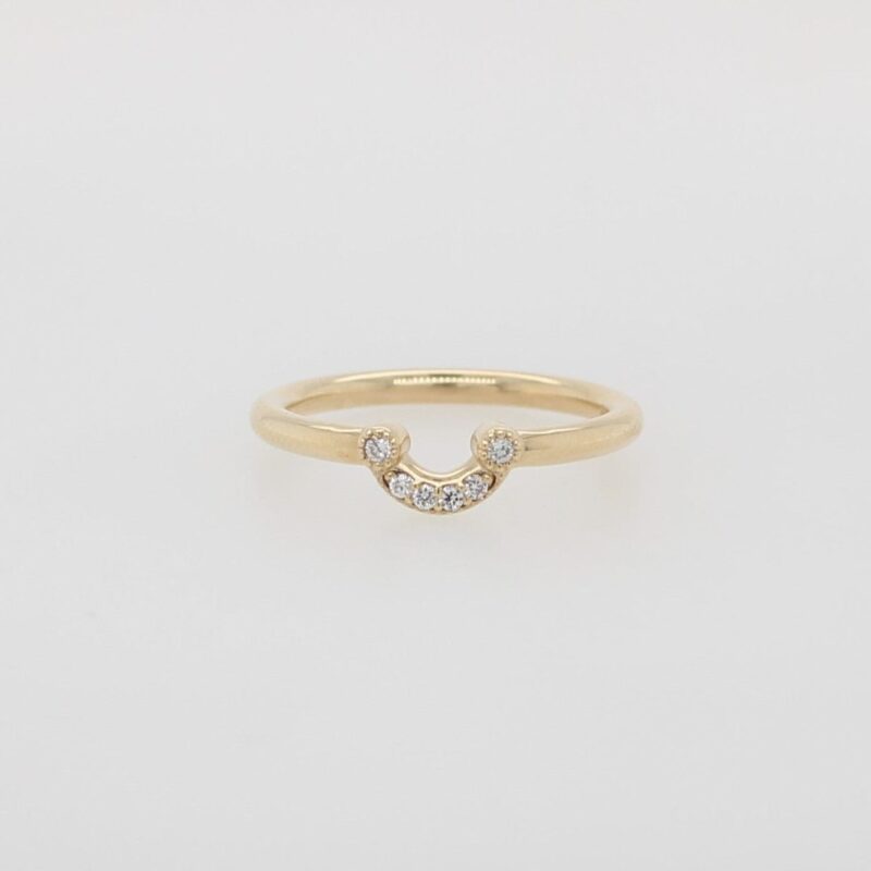 9ct Yellow Gold Eternity ring from the OLYV Collection featuring 6 gorgeous Laboratory Grown Diamonds, TDW= 0.06ct. Made to wear all day everyday. Also pictured here is the matching engagement special occasion ring Oval Lustre (R1752) and Wedder (R1751).