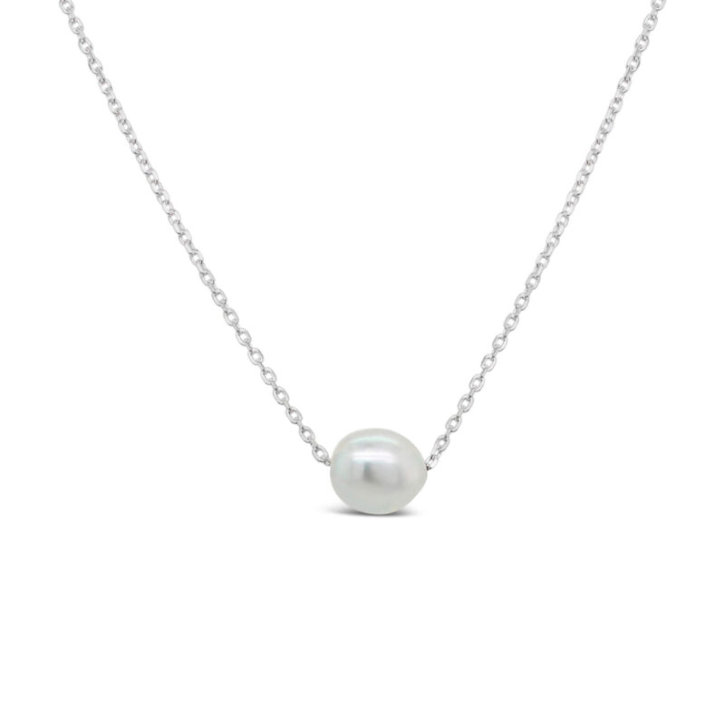 Floating Pearl Necklace with Abrolhos Keshi Pearl – Sterling Silver