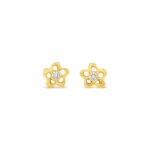 Made in 9 carat yellow gold these stud earrings inspired by the floral design of Australian Wildflowers and feature a white diamond in the centre. Designed and made a Latitude Jewellers and part of our Wildflower Collection.