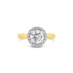 Say “I do” with timeless elegance to our stunning ‘Golden Syrup Ring’. This exquisite piece, crafted in 18ct Yellow and White Gold, cradles a brilliant 1.60ct Diamond at its centre surrounded by a Halo of Diamonds. A further four White Diamonds to compliment the two-tone setting of the ring.