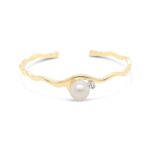 Island Bound Wave Cuff with South Sea Pearl and Diamond – 9ct Yellow Gold