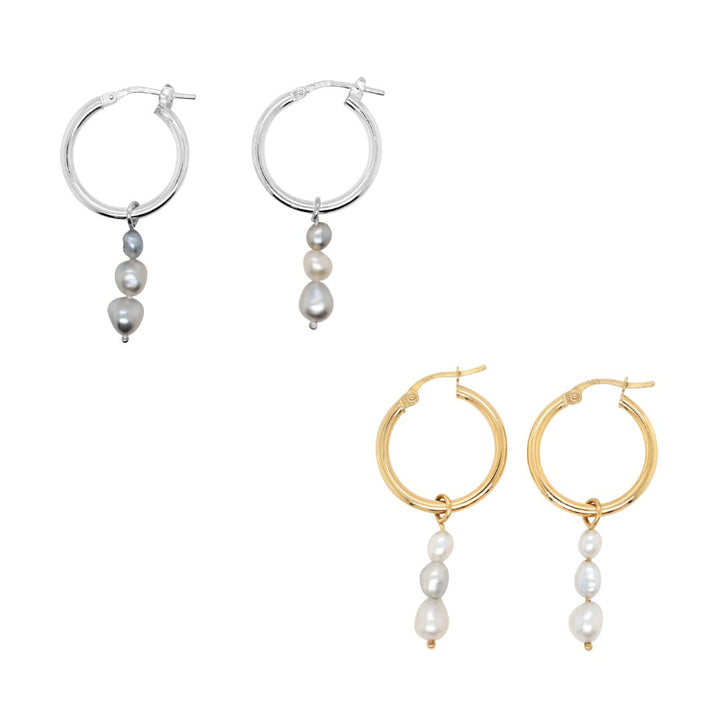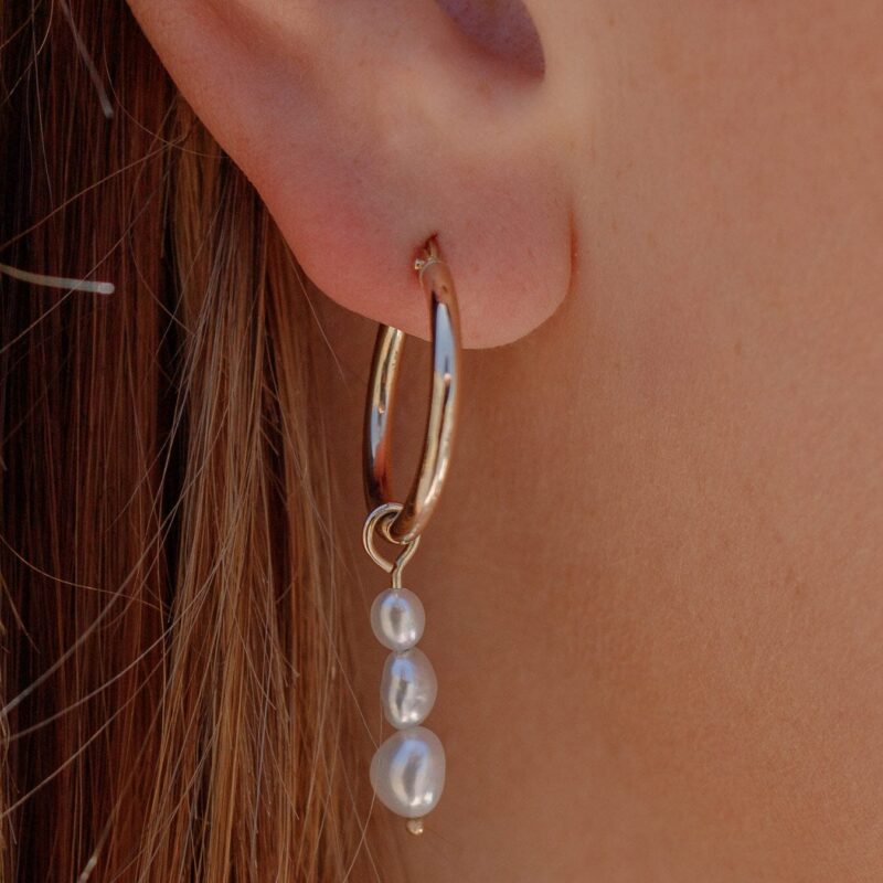 For a simple, elegant touch that’s both unique and captivating our NEW Hoop Earrings, a versatile addition to your jewellery Collection. These minimalist hoops feature interchangeable fittings – giving you the option to go between looks. Stacked with three beautiful small Baroque Keshi Pearls, home-grown at our Pearl Farm at the Abrolhos Islands.