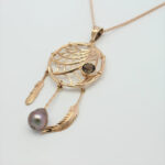 Keeping your dreams big, bold & beautiful, this 9 carat Rose Gold large Dream Catcher pendant features an Abrolhos Island Pearl and a round brilliant cut smokey quartz.