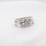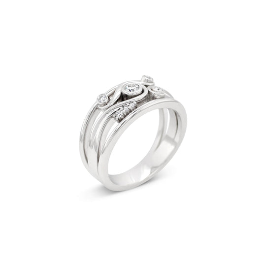 A Latitude Classic – this ‘Swirl’ ring is designed for comfortable wear and complimented with a selection of white diamonds with a total carat weight of 0.22ct Diamonds (Colour GH, Clarity SI).
