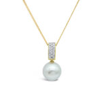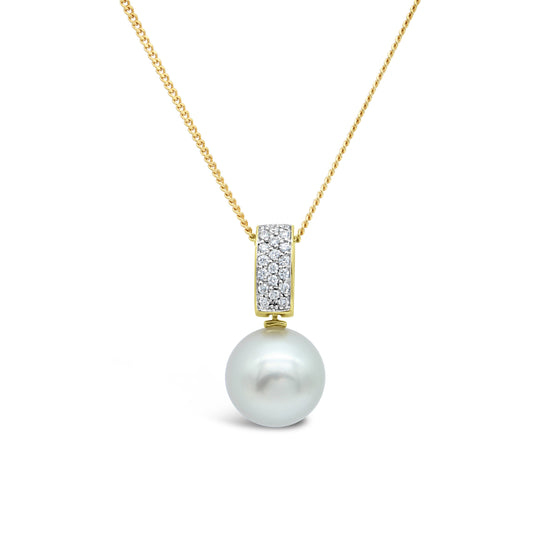 18 carat yellow and white gold enhancer pendant featuring TDW= 0.20 carat diamond and a 12.7mm Abrolhos Island Pearl.