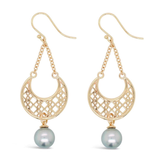Take a journey to another world with these Moroccan-inspired earrings. Pia designed the Moroccan Collection, drawing inspiration from her many travels abroad. The repetitive geometric patterns are in perfe carat harmony with our home-grown Abrolhos Island Pearls, like no other pearls in the world, with their soft pastel grey lustre.