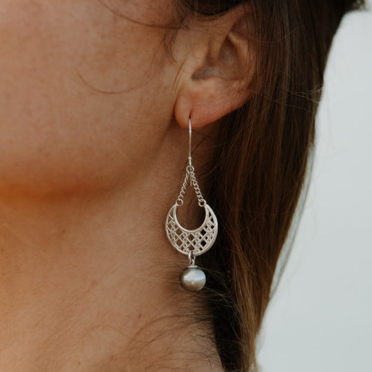 Moroccan Drop Earrings with Abrolhos Black Pearls – Sterling Silver