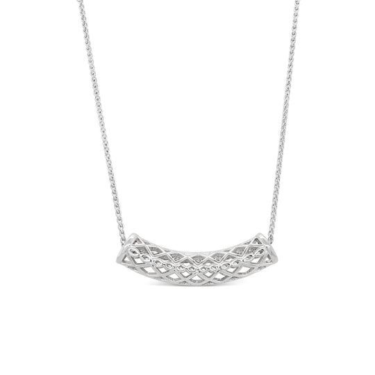 Take a journey to another world with this Moroccan-inspired necklace. Pia designed the Moroccan Collection, drawing inspiration from her many travels abroad. The repetitive geometric patterns on this sliding tube pendant is the perfect way to make a statement.