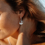 Crafted in solid metal featuring carved designs reminiscent of the water’s surface these earrings are perfectly paired with our Abrolhos Island Keshi Pearls.