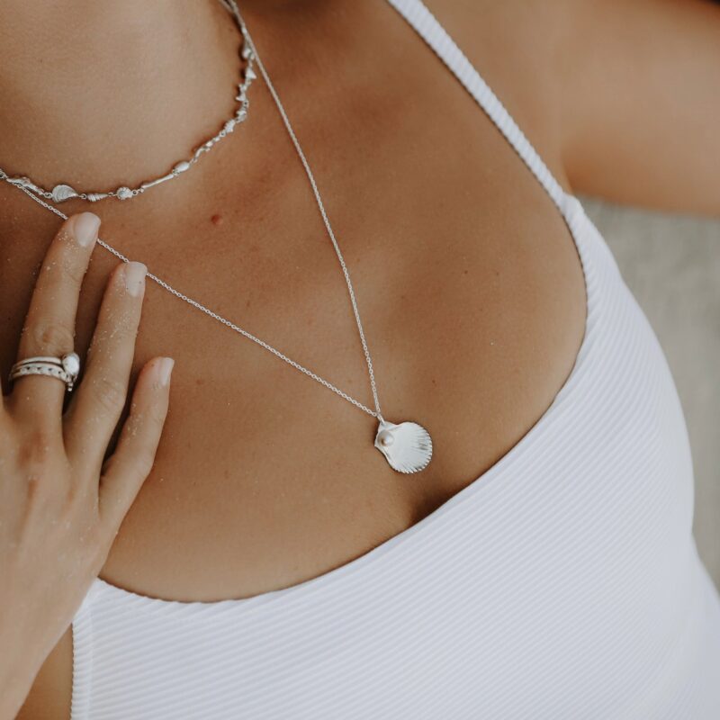 This Sterling Silver Pendant from our Abrolhos Seashell Collection is designed from a delicate Scallop Shell collected from the shores of Abrolhos Islands, Western Australia by Pia Boschetti. Together with an Abrolhos Island Black Keshi Pearl, it makes the perfect pendant symbolising love and beauty.