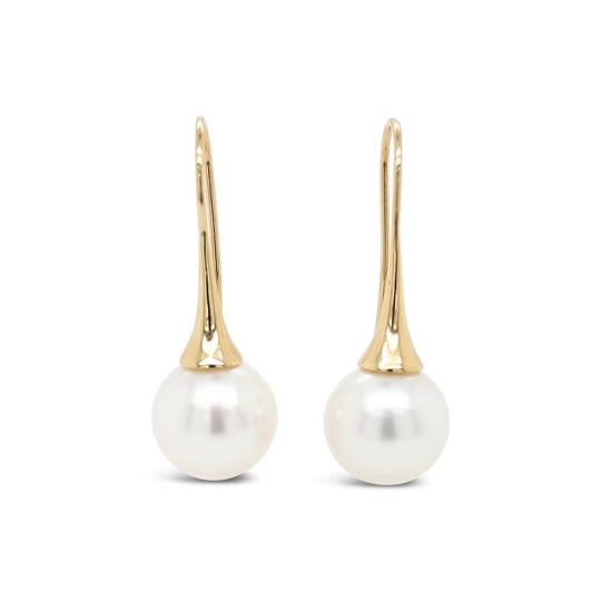 Contemporary, beautiful and forever classic these Fluted Shepard Hook Earrings feature a pair of Australian South Sea Pearls, made in 9 carat Yellow Gold or Sterling Silver.