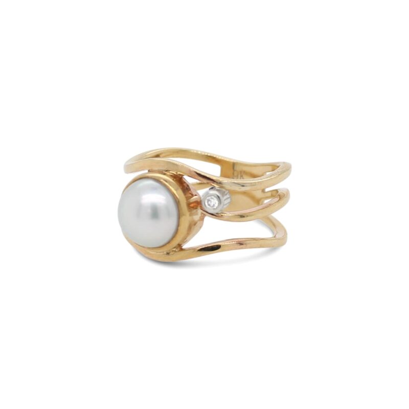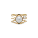Oh my Lexi! This 9ct Yellow Gold open “Slim” Lexi ring features a white South Sea Pearl and a 0.02ct White Diamond bezel set in 9ct White Gold.