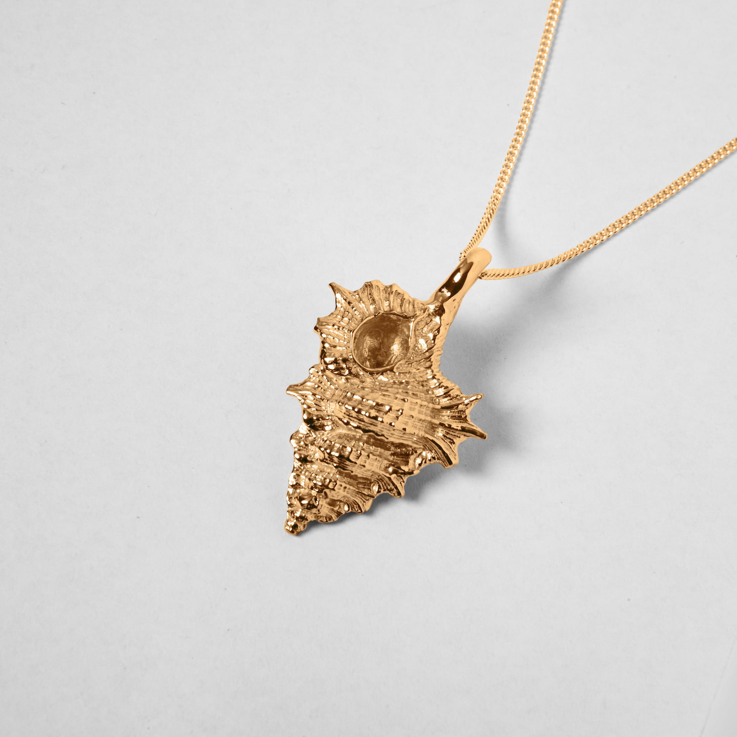 Crafted in solid metal featuring carved designs reminiscent of the water’s surface this pendant are perfectly paired with our Abrolhos Island Keshi Pearls.