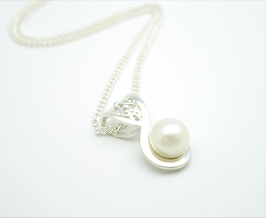 This elegant Sterling Silver filigree swirl bail features a beautiful 8.0-8.5mm South Sea Pearl. Wear it everyday , all day.