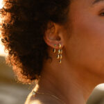 With a feature of natural green onyx stones, the Alga earrings add a touch of minimal sophistication to your lobe. Perfect to wear alone, or layer with hoops or stud earrings to create a curated look.