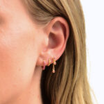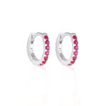 Our Alpha Huggie Earrings feature a single row of created ruby gemstones claw set on a huggie hoop earring. Ethically crafted in recycled sterling silver, with a polished finish.