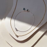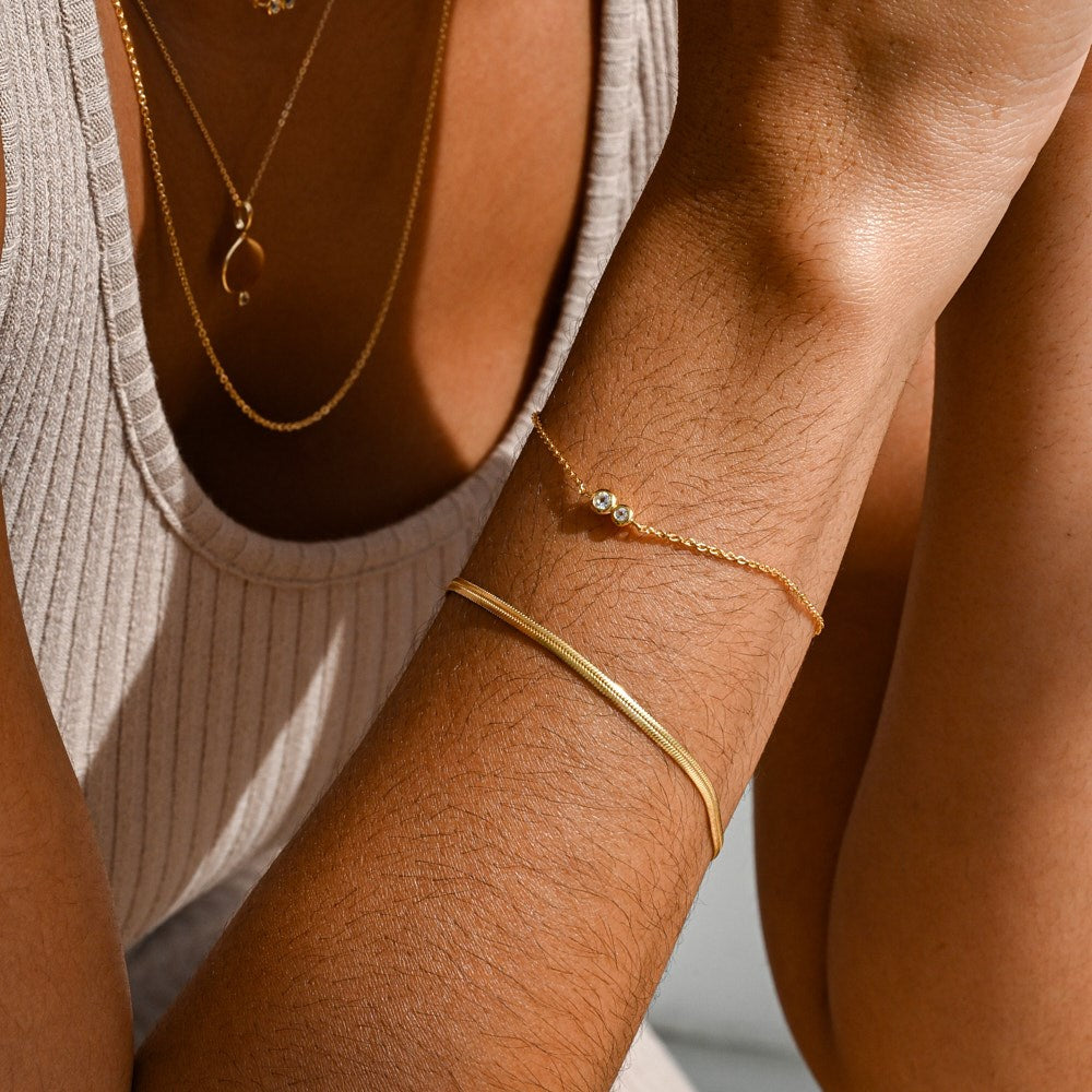 Our Duo Bracelet is set with 2 natural white topaz stones. Minimal and delicate, perfect to layer.
