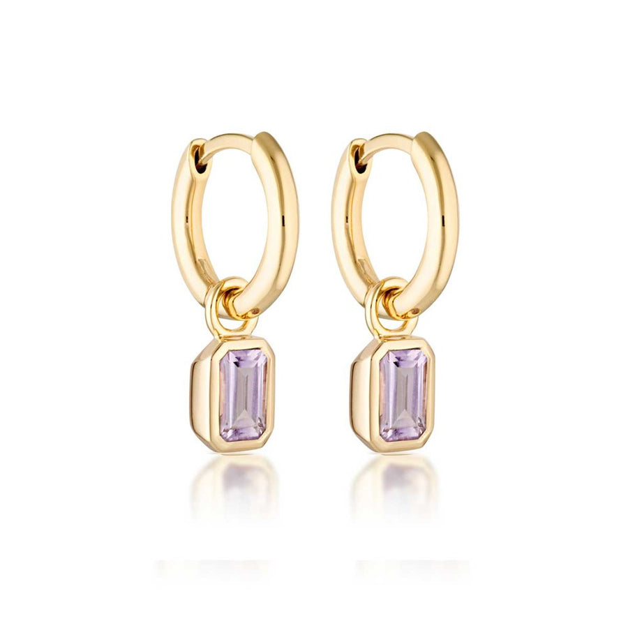 Our Classic Huggie Earrings featuring our Gemme Amethyst charms. Wear them with the charm, or remove the charms to wear as a stand-alone huggie earring style.