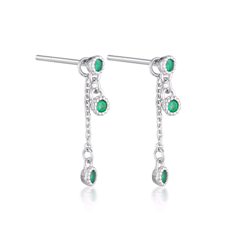 Meteor Chain Stud Earrings – Sterling Silver, Green Onyx