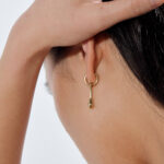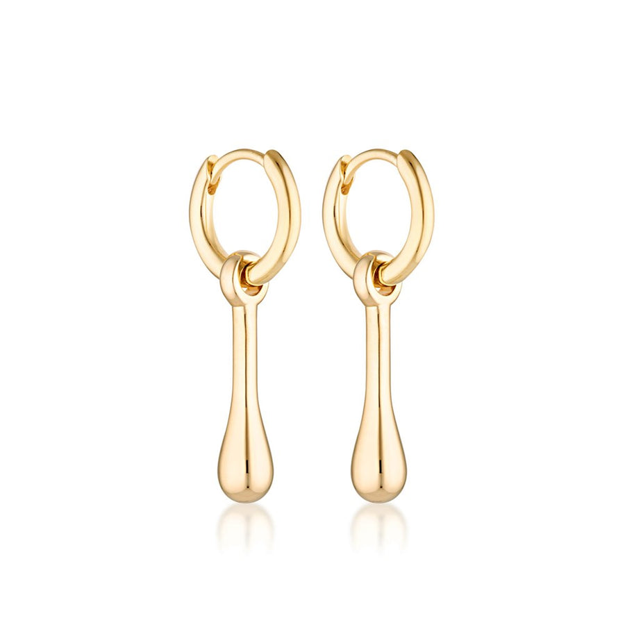 Our Mon Huggie Earrings feature a bold drop shaped charm on our best selling Classic Huggie Earrings. The charm is removable, therefore you can wear the huggie earrings by themselves or with the charm.