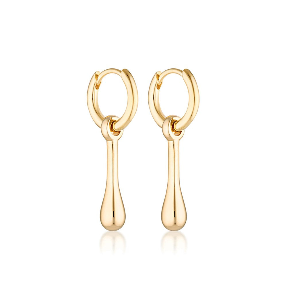 Our Mon Huggie Earrings feature a bold drop shaped charm on our best selling Classic Huggie Earrings. The charm is removable, therefore you can wear the huggie earrings by themselves or with the charm.