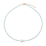 Aquamarine Faceted Beaded Pearl Necklace – Gold Plated