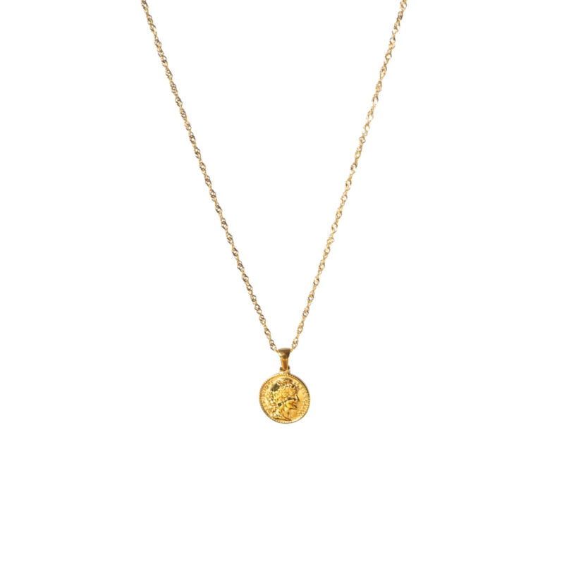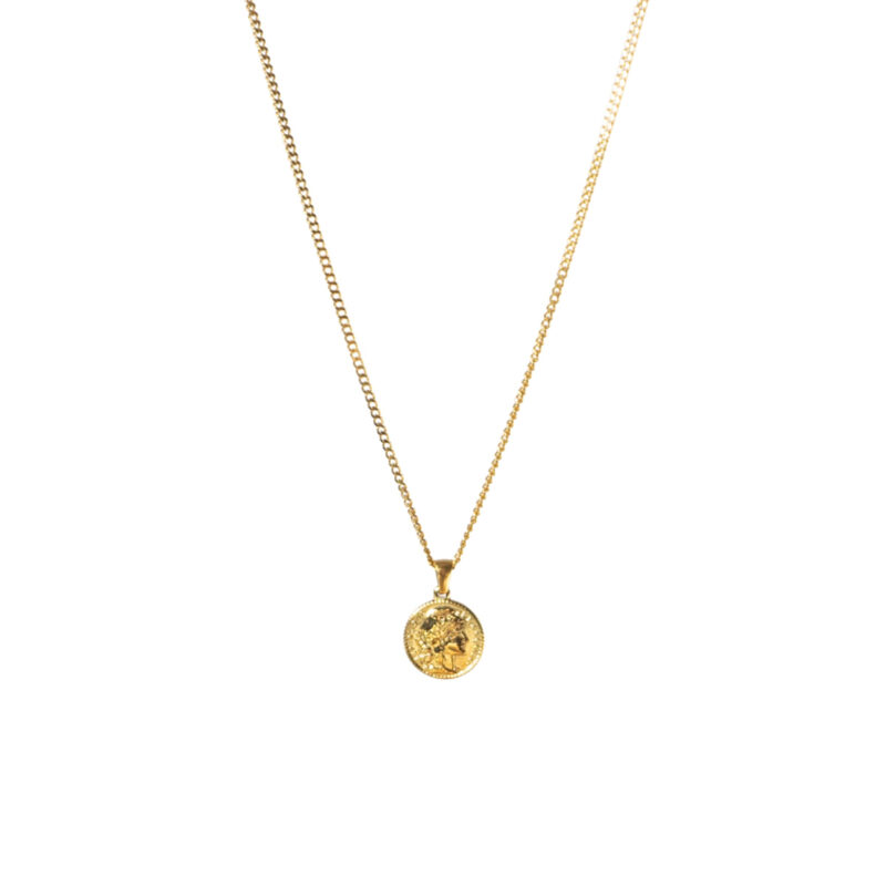 This coin necklace features a Greek God, wearing a Greek god is often seen as calling on the qualities or powers of that deity — like courage, wisdom, or beauty.Tarnish resistant and safe for sensitive skin.