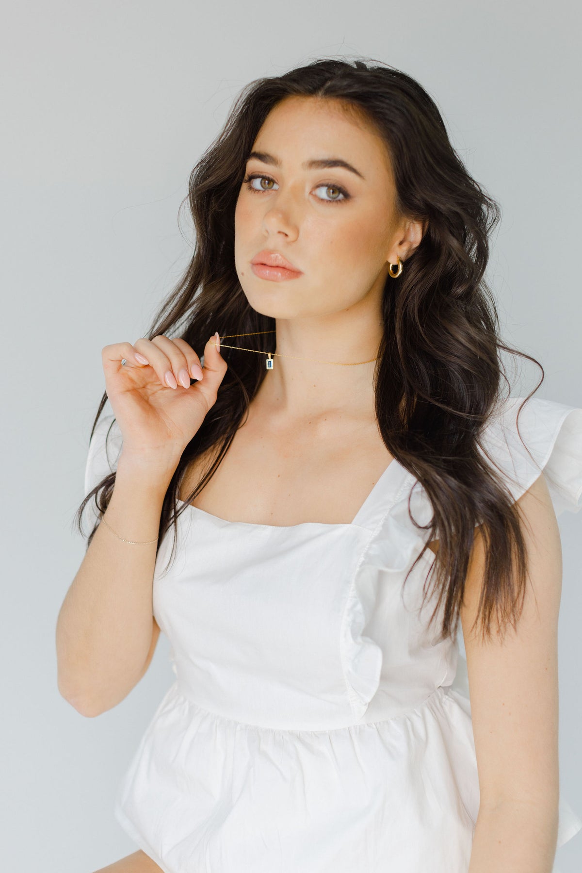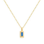 This beautiful sapphire necklace features a baguette cubic zirconia stone, in a gold rectangular bezel setting. The sapphire stone is believed to be good for attracting abundance in your life. Who wouldn’t say no to that!? Tarnish resistant and safe on sensitive skin.