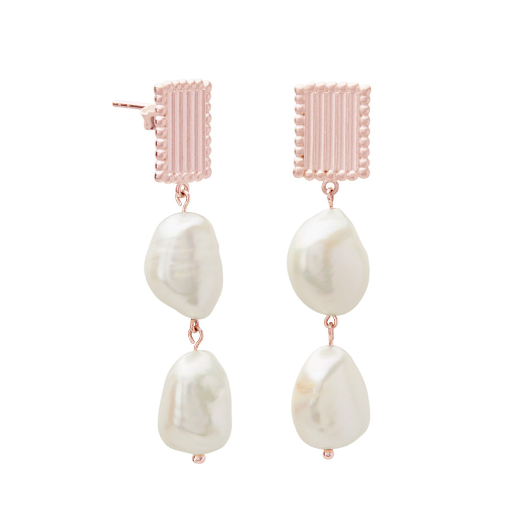 Aphrodite Goddess Hanging Pearl Earrings – Rose Gold
