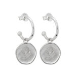 Hoop earrings with etched Empowerment drawing on pendant featuring White Topaz.