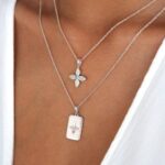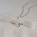 Floral pendant necklace with Mother of Pearl and White Topaz details.