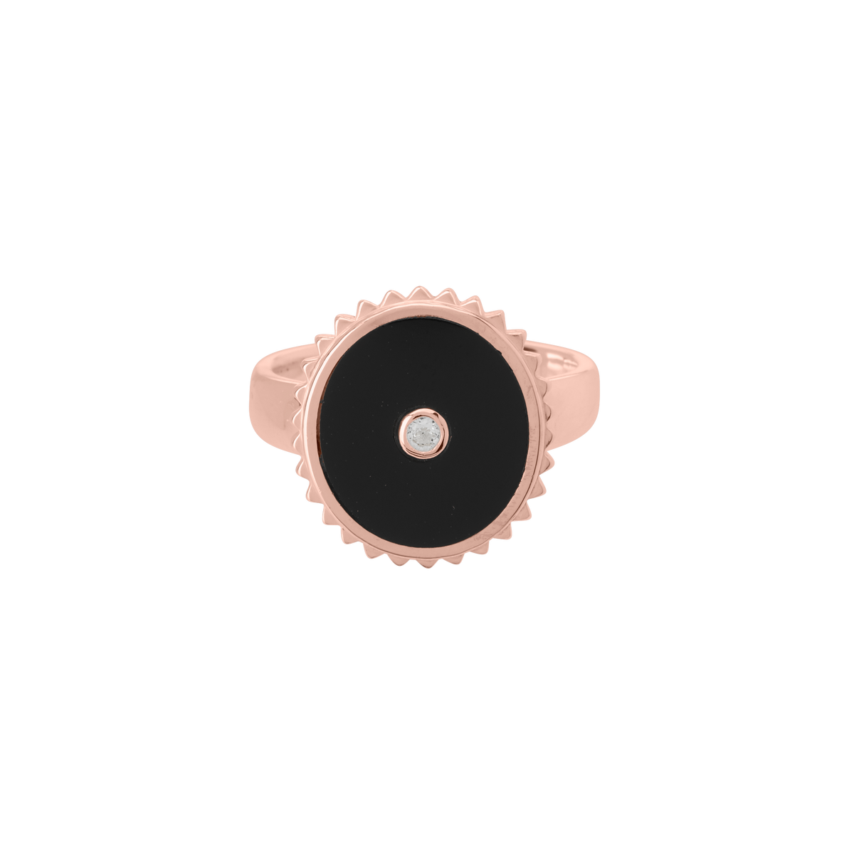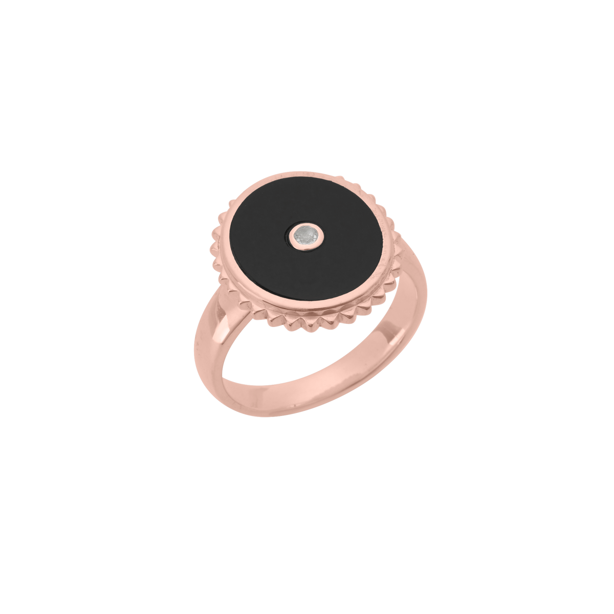 The Halcyon Equilibrium ring features Black Onyx and White Topaz. While Black Onyx encourages grounding, protection and self-control, White Topaz concentrates the wearer on love and promotes equilibrium.