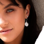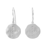 Small Hoop earrings featuring the Celtic Ailm symbol set with White Topaz stones. The Ailm cross gives the wearer courage and strength as she moves into the future with confidence and calm while the outer circle represents a balanced and complete soul.