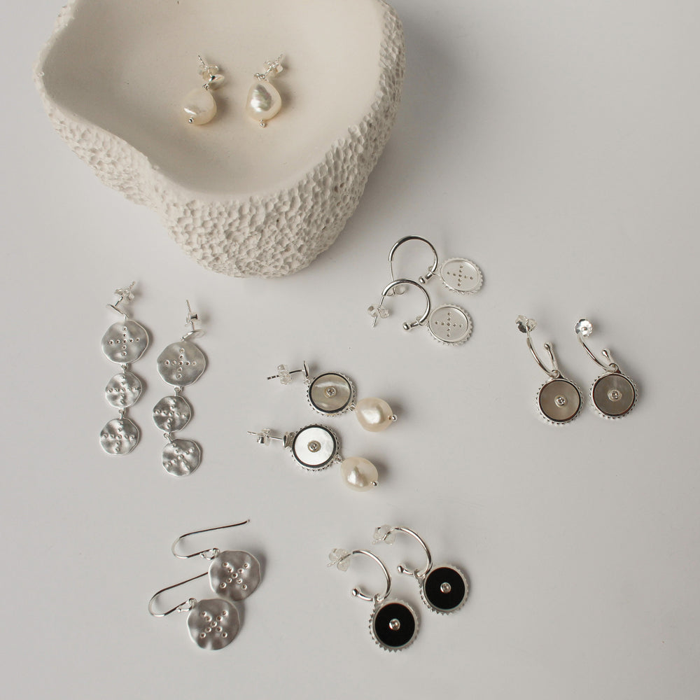 Small pearl earrings to inspire you to manifest your own halcyon times of calm, peace and prosperity with our new talisman pieces. Pearls symbolises wisdom and are valued for their calming effects, helping manifest peace and strength.