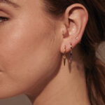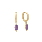 This new Huggie with Hanging Amethyst Baguette is part of our Petites Collection of luxe ear layering featuring Amethyst, Pink Quartz, Rose Quartz, Garnet, Peridot and Blue Topaz.