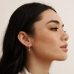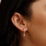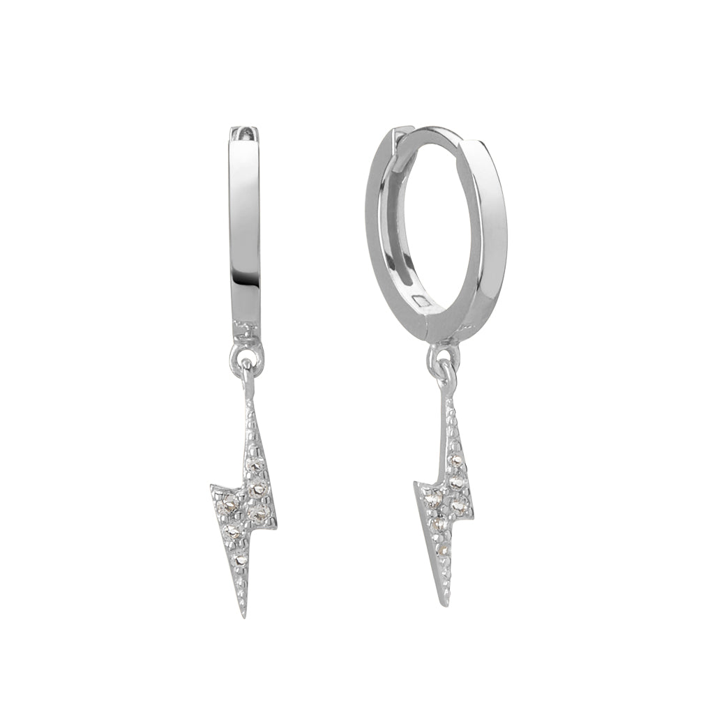 11mm Huggies with hanging lightning Bolt featuring White Topaz.