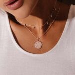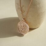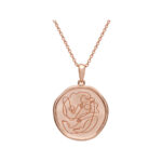Rose Gold Coin Necklace with etched Motherhood drawing on pendant.