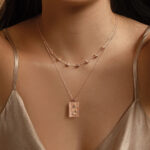 Rectangle Pendant necklace with White Topaz and Moonstone details.