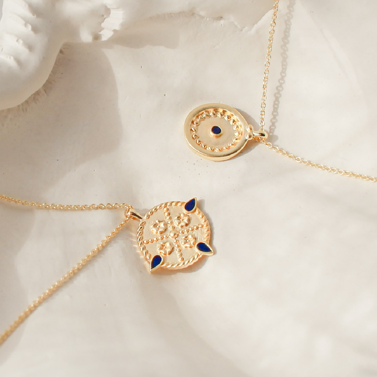 RENEWAL – The Renewal pendant necklace features design elements from jewellery pieces found in the Tillya Tepe hoard. In design, flowers have been used for centuries to symbolise growth, future prosperity, and vitality.