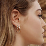An artistic interpretation of an iconic wave like golden brooch, the new Vintage Abstract collection has taken the 1980’s abstract design and made it more textural and contemporary for wearing now. The use of a full shine metal finish and pearls creates a connection with the ocean and our modern world. Featuring an undulating and playful surface, the collection is romantic and whimsical, featuring Hoop and Hanging Statement earrings as well as a FOB Chain necklace and Stacking ring.