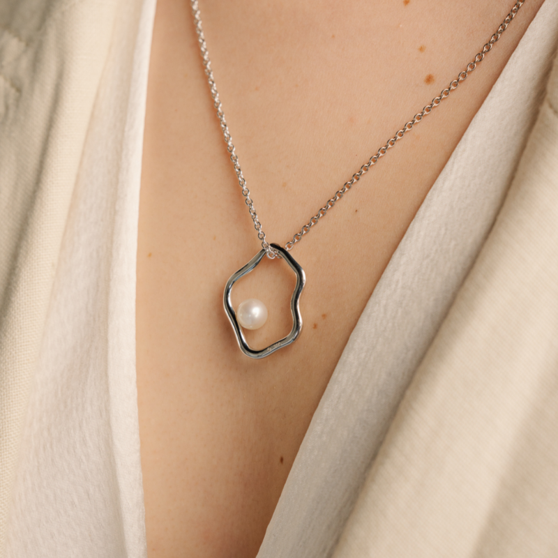 A graceful Flow Pearl Pendant featuring a Broken Bay (NSW) grown 7mm AA grade Australian Akoya Pearl set in an organic sterling silver or yellow gold vermeil design.