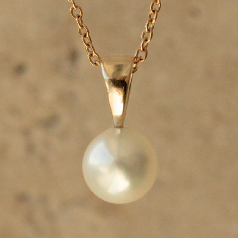 This classic Simple Pearl Pendant features a Broken Bay (NSW) grown 7mm AAA grade Australian Akoya pearl set in gold.