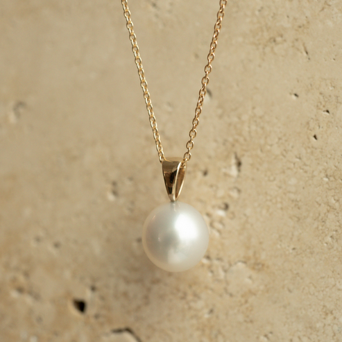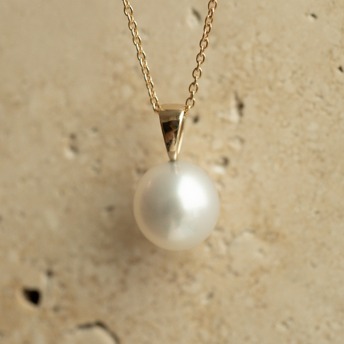This classic Simple Pearl Pendant features a Cygnet Bay (WA) grown 10.5mm Drop B1+ grade Australian South Sea pearl set in gold.