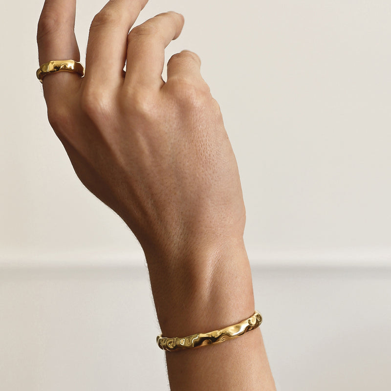 With weighted proportions and distinctive organic texture, the Forma Cuff adds a unique modern edge to every ensemble. Meticulously crafted with a high-quality solid weight and an adjustable fit, this timeless piece will become your next trusted go-to accessory, adding a touch of understated elegance to every ensemble.