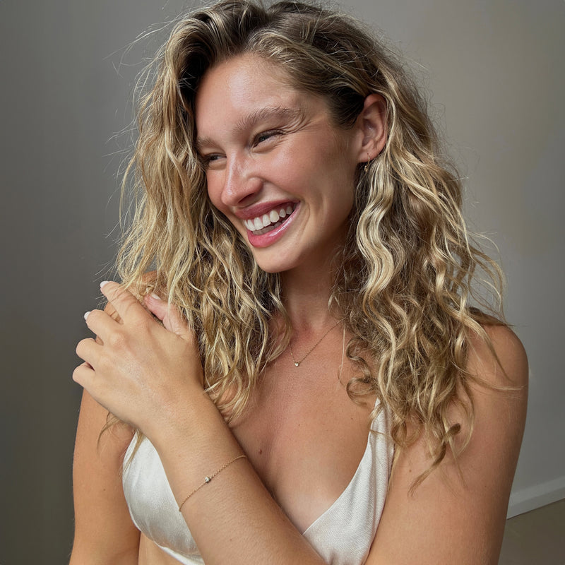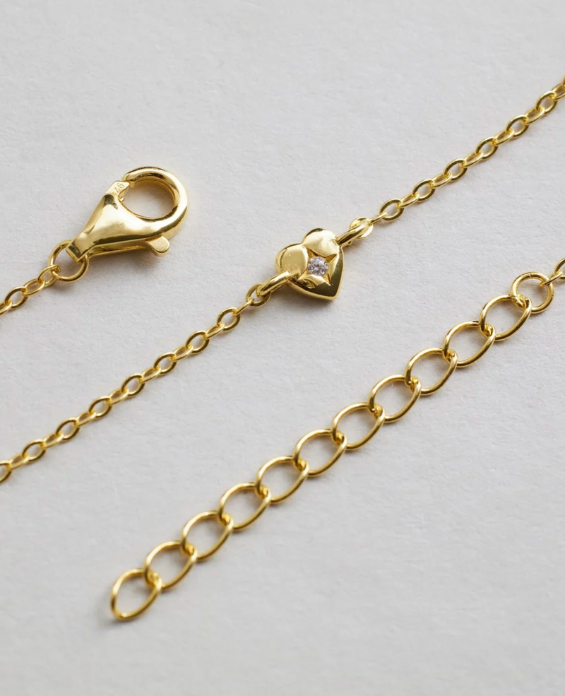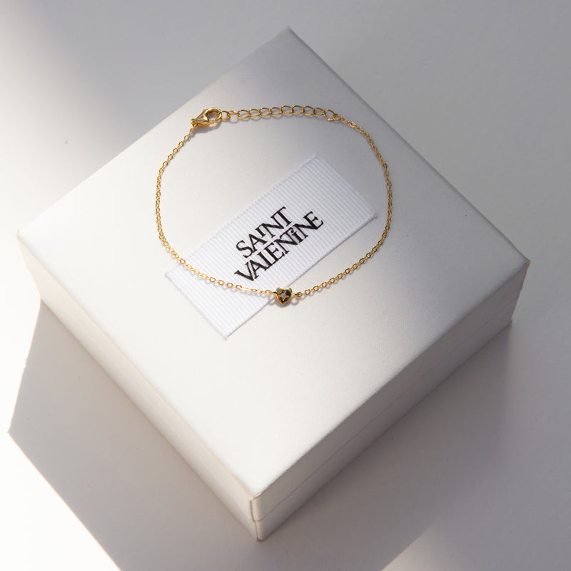 The Mini Heart Bracelet features a dainty heart shaped pendant embellished with a single stone, suspended on a fine chain. Inspired by the E. E. Cummings poem, ‘I Carry Your Heart with Me’, this meaningful piece is perfect for every day adornment or a cherished gift.