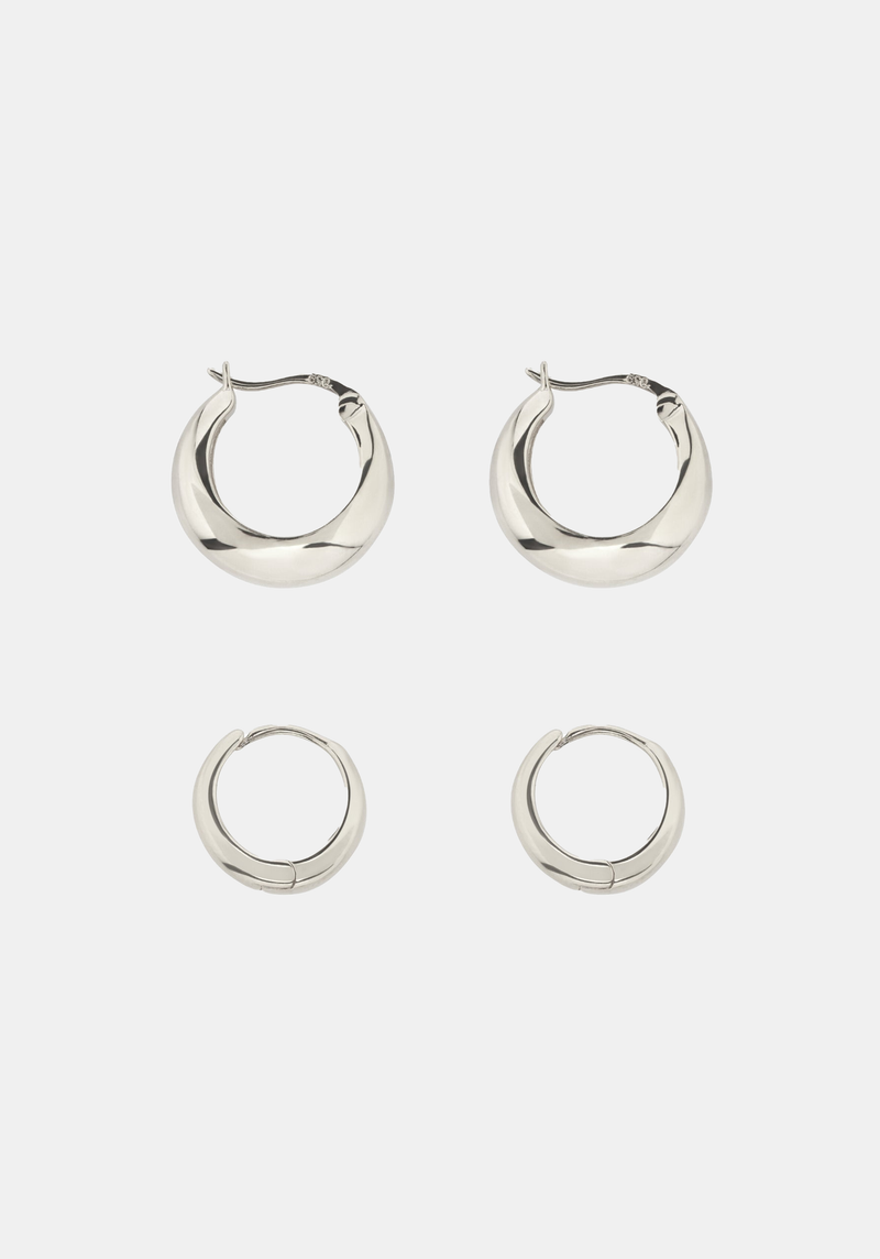 The Positano Set offers the perfect mix of timeless style and everyday essentials with two pairs of our most popular and versatile hoops in varying sizes. Stacked together this pair adds a minimal and chic finish to every outfit.