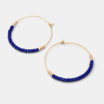 These eye-catching and simple hoop earrings will add a splash of colour your casual outfits. These hoops feature matte dark blue and sparkly silver coloured glass beads on gold filled hoops.