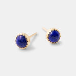 The small handmade gemstone stud earrings are created in sparkling solid 14ct gold, with each featuring a gorgeous deep blue lapis lazuli gemstone in a serrated edged setting.