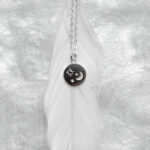 The silver pendant is suspended from a delicate and sparkly silver chain. The chain is completed with a sterling silver clasp. The adjustable chain can be worn at different lengths.