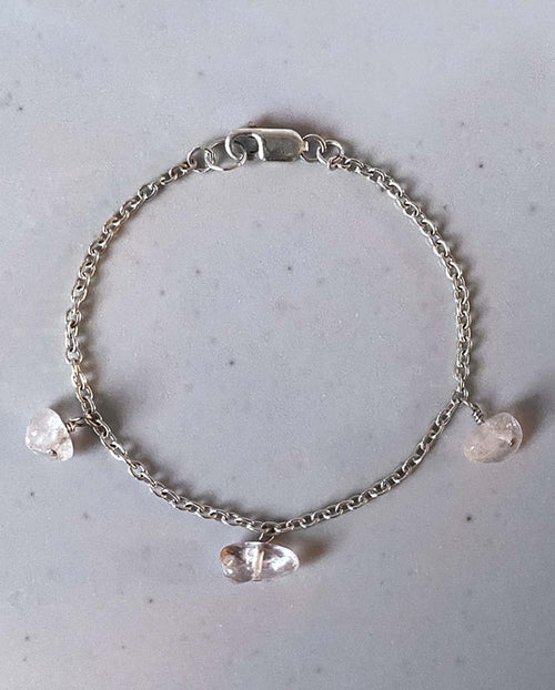 A fine figaro chain bracelet with our dainty Crystal Duo Charm.